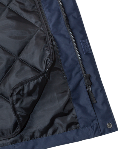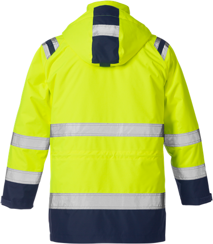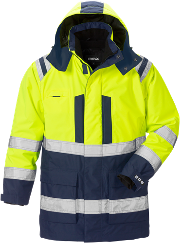 Airtech® hingav, tuule- ja veekindel / Eemaldatav tepitud vooder – saab kasutada ka kestjakina / Eemaldatav voodriga kapuuts reguleeritava rihma ja pingutusnööriga / Fliisvoodriga krae / Helkurdetailid õlgadel / Eesmine nööpnõel kahesuunalise lukuga krae ülaosani ja peidetud trukkkinnitusega / 2 rinnataskut lukuga / ID-kaardi tasku / Kaarditasku sisemise mobiiltelefonitaskuga, mis on ligipääsetav, kui rõivas on suletuna / Mikrofoni aas sees / 2 lõõtskangaga esitaskut klapi ja peidetud trukkkinnitusega / 2 fliisvoodriga kätesoojendustaskut / 2 sisemist taskut lukuga / Reguleeritav varrukaots / Elastne sisemine kätis pöidlakaelaga / Reguleeritav vöökoht pingutusnööriga / Voodris lukuga trükkimiseks / Veepidavus 20 000 mm / Hingavus Airtech® materjali RET <15 / Heaks kiidetud vastavalt standarditele EN ISO 20471 klass 3, EN 342 ja EN 343: kestjakk klass 4/4, kestjakk eemaldatava voodriga klass 4/1 / Värv 271 on heaks kiidetud vastavalt standardile RIS-3279-TOM: 2019 väljaanne 1 Ühendkuningriigi raudteestandard / Sertifitseeritud pärast 25 pesu / OEKO-TEX® sertifitseeritud.