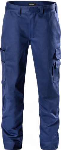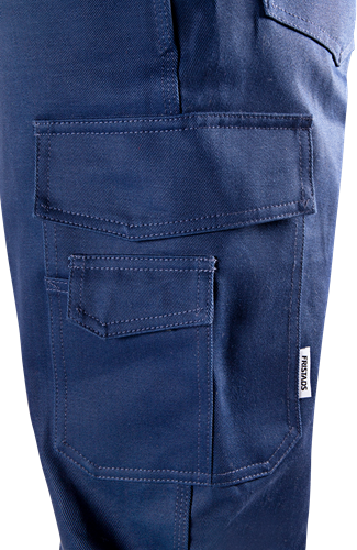 2 front pockets / 2 back pockets, one with flap / Concealed front button / Leg pocket with inside folding rule pocket over side seam and 3 extra pockets / Leg pocket with flap and outside mobile phone pocket with flap / Triple-needle stitching / Adjustable leg length with 5 cm hem allowance / Leasing-laundry tested according to ISO 15797 / OEKO-TEX® certified.