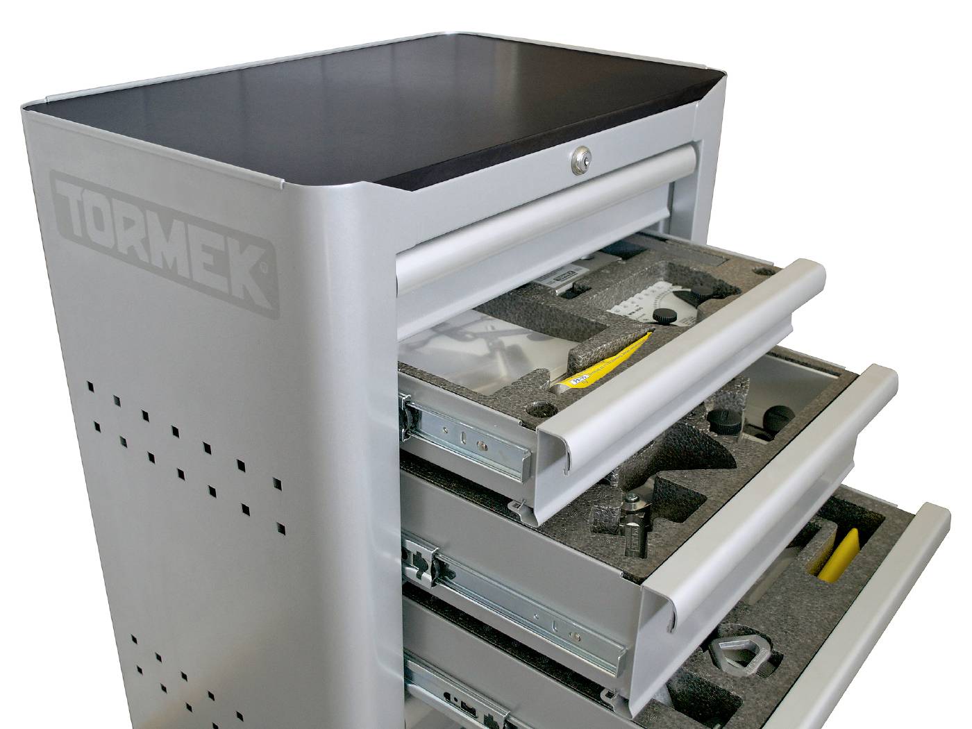 Kõrgekvaliteetne terituskeskus sobivamõõtmeliste tarvikusahtlitega. Praktiline valik rakiseid ja tarvikuid igat liiki lõikeriistade teritamiseks. Spetsiaalselt valmistatud sahtlid Tormeki masinatarvikutele, kodupaketile ja treialipaketile (tarvikuid ja rakiseid kaasas ei ole).