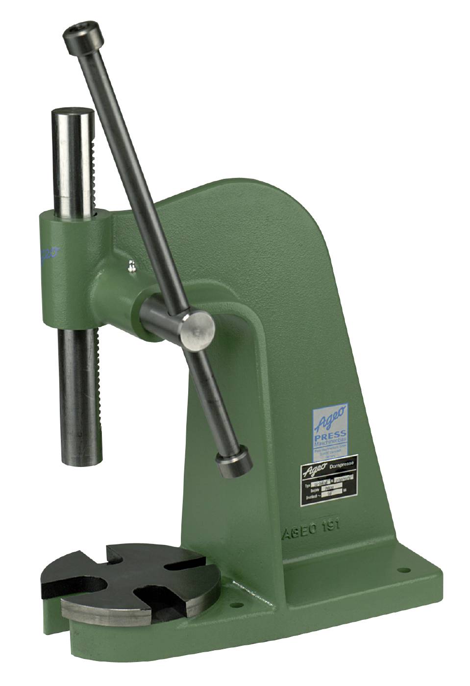 Ette nähtud põhiliselt pukside, võllide, tornide jms sisse ja välja pressimiseks. Tugeva ehitusega. Malmist statiiv, terasest hammaslatt ja hammasratas.