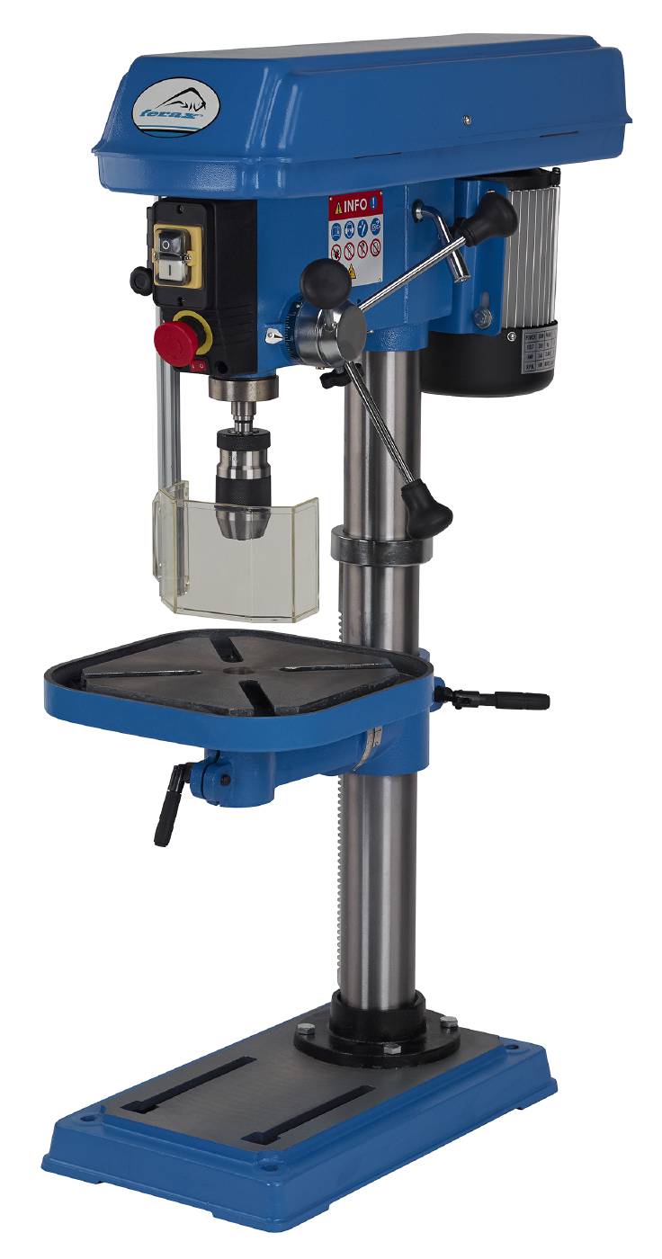 Rihmajamiga käsiettenihkega laua- ja sammaspuurmasinad. Töökodadele ja kergetööstusele. Kiiruste vahetamine toimub rihmarataste abil. Käsiettenihkeks on kolme kangiga käsiratas. Laud on hammaslati abil üles-alla liigutatav, skaala järgi kallutatav 45°-0°-45° ja külgedele pööratav. Spindel pöörleb kuullaagritel. Skaala järgi reguleeritav puurimissügavuse piiraja. Laseri abil leitakse täpne puurimiskoht. Mikrolülitiga kaitseekraani saab üles tõsta ja langetada.Komplektis on 16mm kiirpadrun, puuripadruni spindel, mitmesugused võtmed, 1-kiiruseline mootor – kaitseklass IP 20, 3-sooneline toitekaabel ja nullpingekaitsega lüliti.