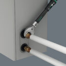 4-osaline Click-Torque momentvõtmete komplekt koos kolme isereguleeruva mutrivõtmepeaga Joker. Kruviühenduste korrektseks pingutamiseks külmutus- ja kliimaseadmete ning soojuspumpade paigaldamise ja remondi käigus. Äratuntava Wera disainiga Click-Torque võti. Väga tugev ja täpne konstruktsioon, mis vastab standardile DIN EN ISO 6789-1:2017-07. Lihtsalt seadistatav ja salvestatav vaikeväärtus. Skaalaväärtuseni jõudmisel kostev ja tuntav klõps hõlbustab soovitud momendiväärtuse seadistamist. Tugev vabastusmehhanism tagab seadistatud momendiväärtuse saavutamisel selgelt kuuldava ja tuntava vabanemissignaali. Momendi kontrollimiseks päri- ja vastupäeva ning nelikantotsaga 14×18 mm peatarvik vastavate sisestustarvikute kinnitamiseks. Sujuvalt reguleeritavate paralleelsete lõugadega Joker 7880 isereguleeruvad mutrivõtmepead asendavad mitmes suuruses mutrivõtmeid. Vajalik suurus seadistatakse automaatselt ja sujuvalt, kui tööriist asetatakse kuuskantpoldi- või kruvi vastu. Narrefunktsioon tagab kiire ja ühtlase keeramise ilma tööriista eemaldamata. Lõua kandilised kontaktpinnad võimaldavad saavutada vaid 30° töönurga.