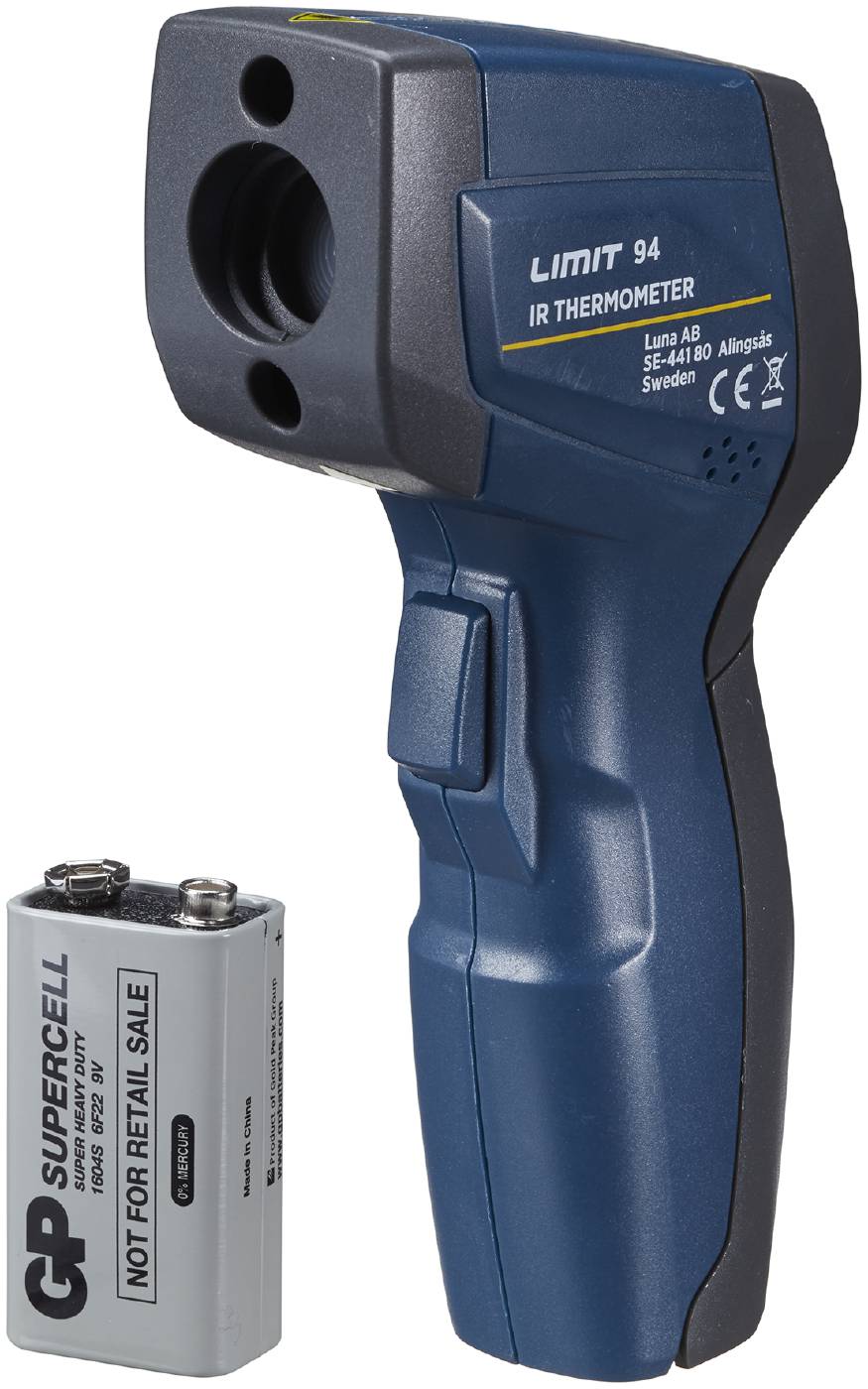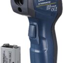 Puutevaba infrapuna profitermomeeter kuni 380°C pinnatemperatuuri mõõtmiseks. Ergonoomiline teostus, kõrge täpsus ja kiirelt ilmuv näit. Usaldusväärne mõõtetulemus tänu kahele laserpunktile, mis tähistavad mõõteala välisservi. D:S suhe 12:1. Reguleeritav emissioonitegur. Registreerib max ja min temperatuuri. Inverteeritud vedelkristallekraan suurte 8 mm numbritega. Ümberlülitatav °C ja °F vahel. Kasutatav toiduainete tööstuses, ehitiste turva- ja tuletõrjealastel ülevaatustel, plastivalamisel, asfalteerimisel, hooldustöödel tööstuses jne. Kaasas 9 V patarei.
