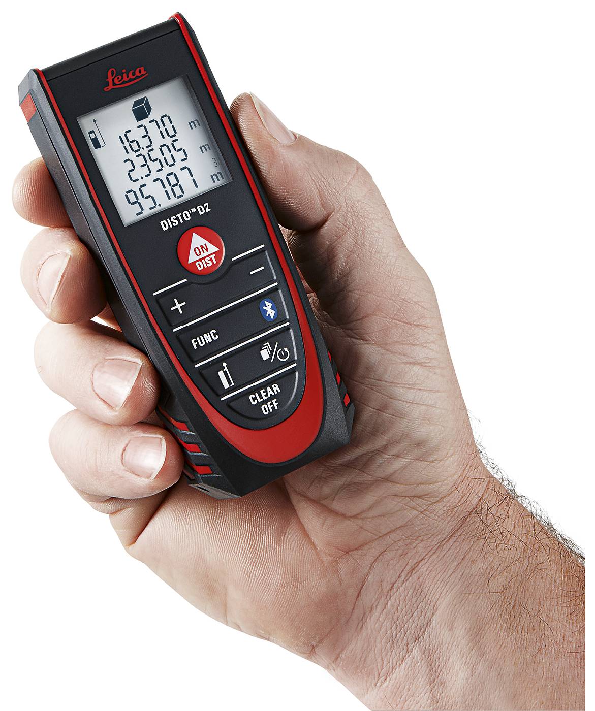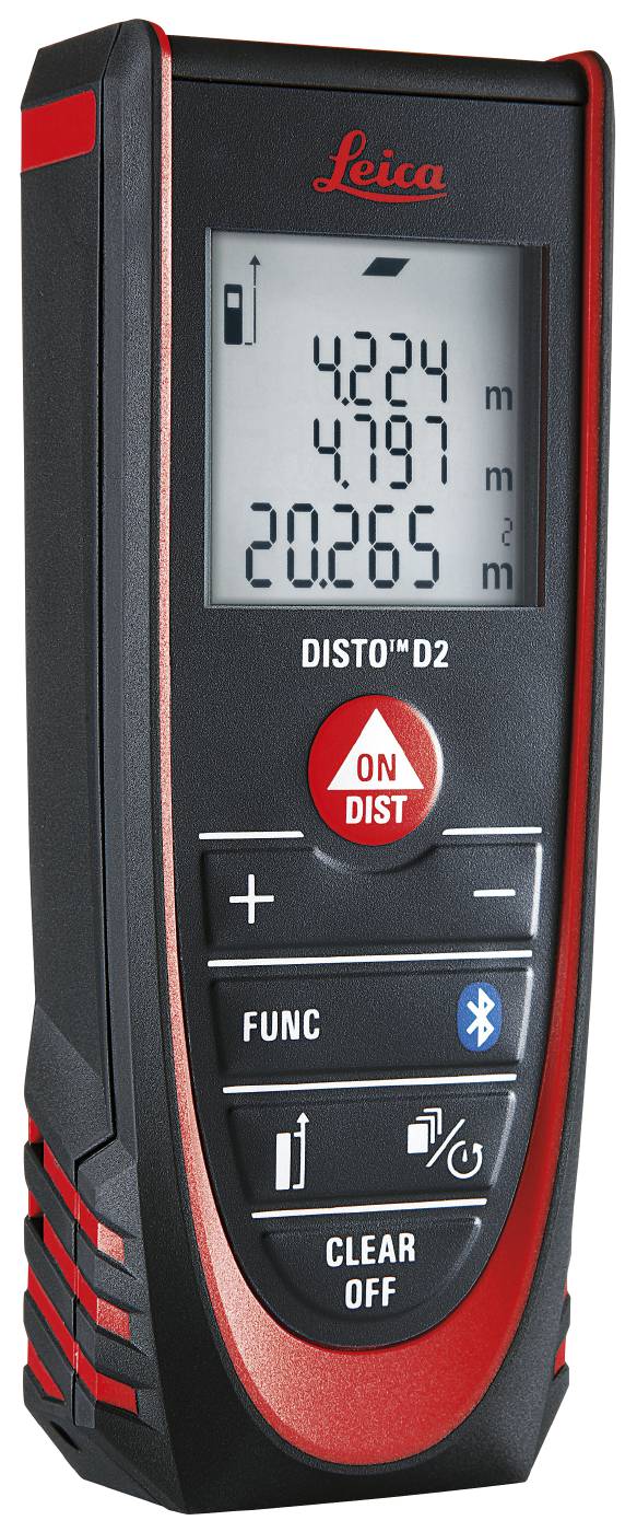 Disto D2. Arvutab pindala ja ruumala. Võib valida esi- või tagaservast mõõtmise. Liidab ja lahutab. Automaatne väljalülitus. Kauguse mõõtmine kuni 100 m. Pidev mõõtmine. Min-/max. Mõõtahelate funktsioon. Mälus 10 viimast mõõtetulemust. Eelprogrammeeritud geomeetrilise arvutusega (Pythagorase valemiga) mõõdab ka eemal asuvate punktide vahelisi kaugusi.