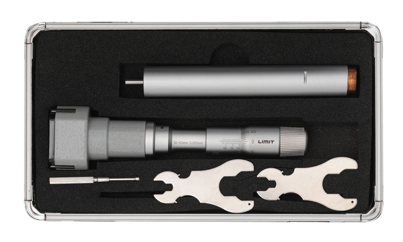 Kolmepunktilised kruvikud ja kruvikukomplektid avade mõõtmiseks. Isetsentreeriv mõõteotsak ja konstantset mõõtejõudu tagav friktsioonseade. Kõvasulamist mõõtepinnad. Mõõteotsad ulatuvad põhjast välja 0.5 mm. Kaasas etalonrõngas. Ühes komplektis on neli kruvikut vahemikus 20-50 mm ja teises 63-100 mm ning igasse komplekti kuulub 2 etalonrõngast. Komplektis on pikendus ja etalonrõngas. Valmistatud vastavalt DIN 863/4.