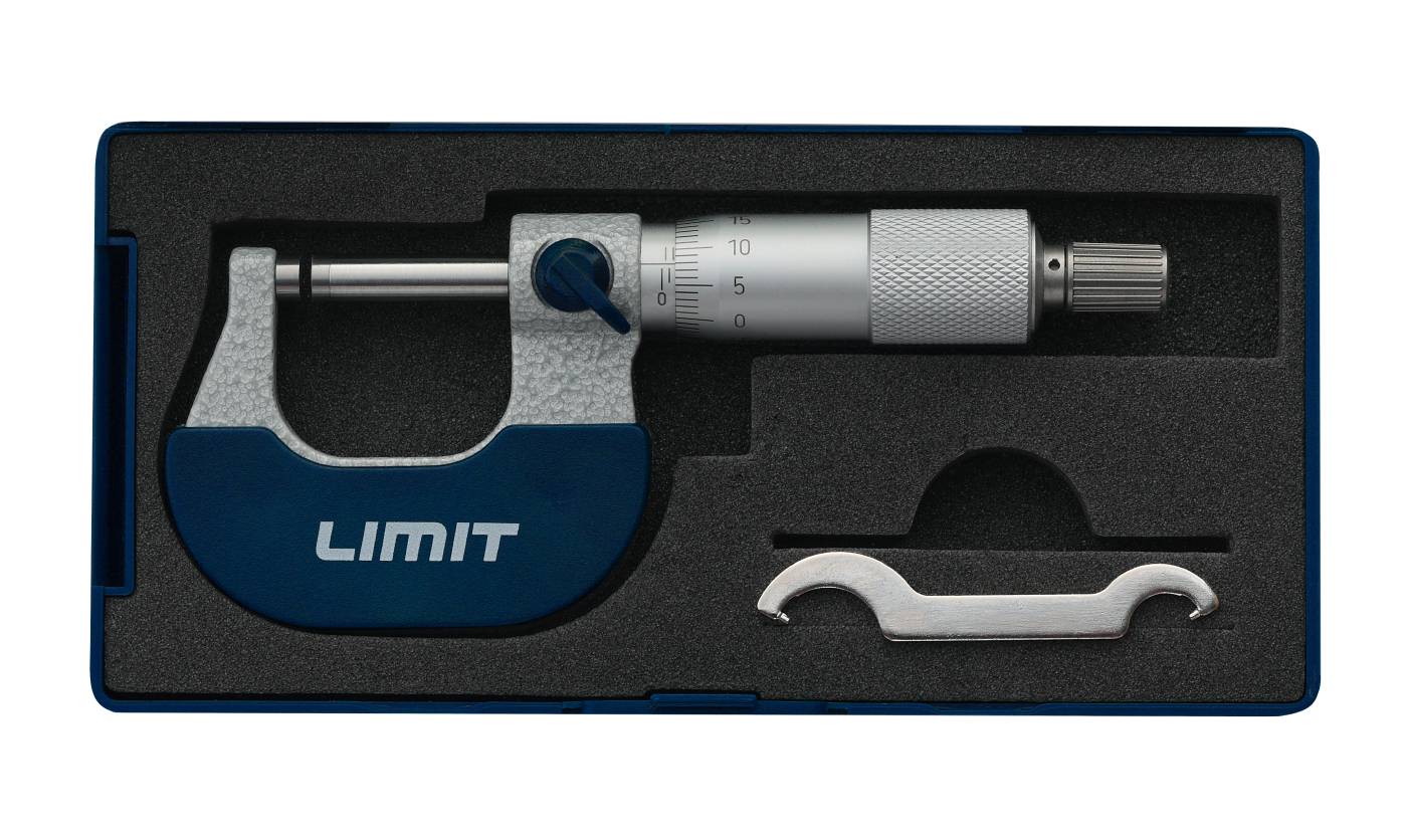 Sepistatud looga ja mattkroomitud skaalaga kruvik välismõõtmete mõõtmiseks. Karastatud 6,5 mm spindel ja kõvasulamist peenplangitud mõõtepinnad. Friktsioonhülss ja lukustusnupp. Mõõtmed vastavalt DIN 863.