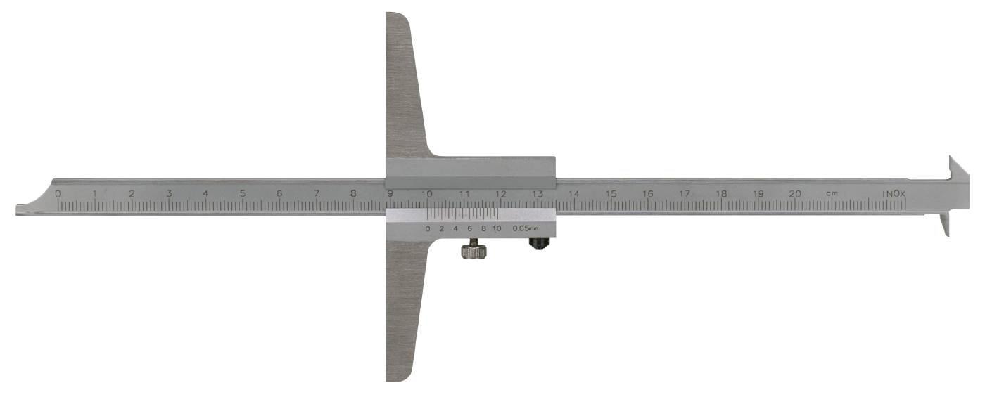 Roostevabast terasest. Mattkroomitud skaala. Pööratav skaala kas haagiga või tipuga mõõtmiseks. Millimeeterskaala. Noonius 0.05 mm. Toe pikkus 100 mm, haagi pikkus 6 mm.
