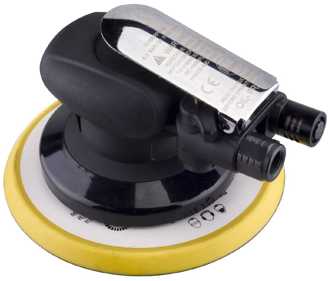Ekstsentrikpöörlev lihvmasin, ilma tolmu väljatõmbeta. Hästi balansseeritud ja madala vibratsioonitasemega. Parima haaratavuse tagab korpuse kummikate. Lihtne disain annab usaldusväärse tööriista. Sobib metalli ja puidu lihvimiseks. Suruõhku pole vaja täiendavalt õlitada. Takjakinnitus, reguleeritav kiirus ja väljuva õhu summuti.