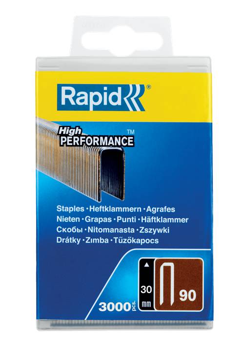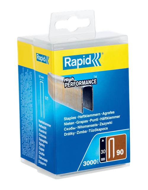 Galvaniseeritud kitsaseljaline topeltnael Rapidi pneumopüstolile PBS151. Klambri pinnatöötlus tagab kindlama haakumise.