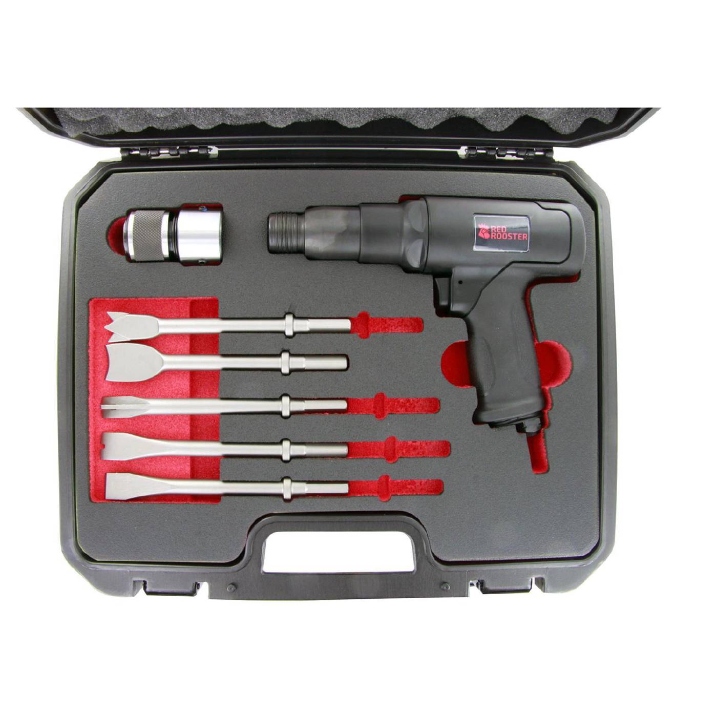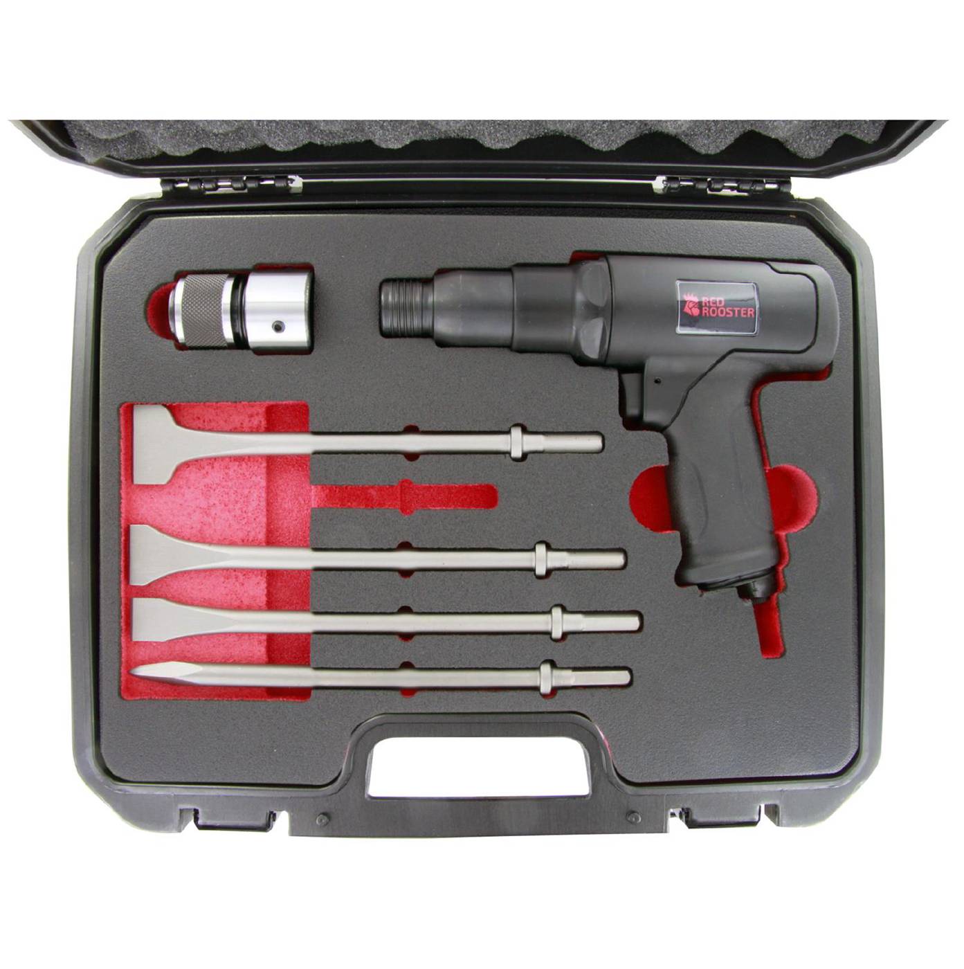 Meiselhaamri komplekt RRH-4312 K on saadaval kahes variandis: mitmesugusteks metallitöödeks (art nr 27680-0109) ja kivitöödeks (art nr 27680-0208). Tugev kompaktne ergonoomiline meiselhaamer. Varustatud kiirvahetuspadruniga, mis võimaldab kiiremini tööriistu vahetada. Kasutaja kaitseks on haamril vibratsioonisummuti ja isoleeritud käepide. Õhu väljalase läbi käepideme. Tööriista universaalsus teeb selle kasutatavaks paljude alade professionaalidele. Meiselhaamri komplekt RRH 4312 K 1(27680-0109). Komplektis on meiselhaamer, kiirvahetuspadrun ja 5 meislit metalli töötlemiseks. Lapikmeisel 18 mm, lõikemeisel 16 mm, heitgaasisüsteemi lõikemeisel 26 mm, kahepoolne lõikemeisel 22 mm ja punktkeevituse meisel 20mm.Meiselhaamri komplekt RRH 4312 K 2(27680-0208). Komplektis on meiselhaamer, kiirvahetuspadrun ja 4 meislit betooni ja kivi töötlemiseks. Lapikmeisel 18 mm pikkusega 250 mm, lapikmeisel 33 mm, lapikmeisel 40 mm ja piikmeisel pikkusega 250 mm.