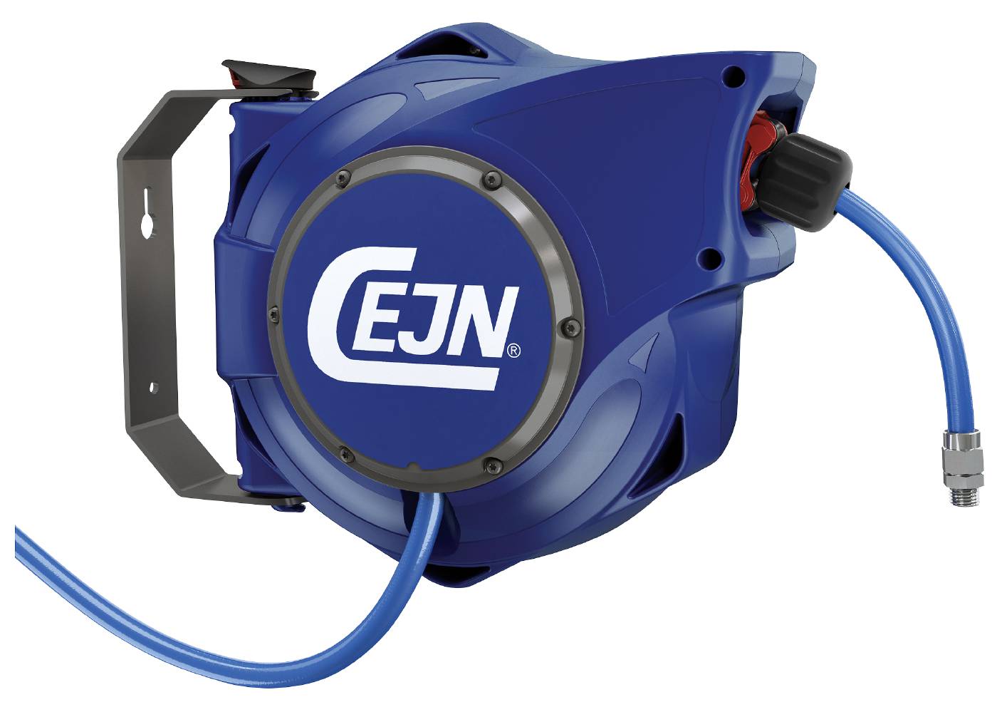 Voolikukerija suruõhuvoolikule. Suur läbivool, väike rõhulangus. Aeglane sissekerimine. Robustne ehitus. Pehme stopperkuul minimeerib ohtu kukkumisel.CEJNi voolikukerijaga saad töötada täie võimsusega, kuna erinevalt paljudest teistest voolikukerijatest ei piira see patenteeritud konstruktsiooniga toode suruõhu läbivoolu. See parandab töö tulemuslikkust, säästab nii aega kui energiat. Voolikukerija on ideaalne lahendus ohutu töökoha loomisel. Aeglast tagasikerimist tagav turvafunktsioon, voolikujuhtija, PUR-voolik, pehme stopperkuul ja murdmiskaitse teevad sellest turu parima voolikukerija. Kasutaja võib end vabalt tunda, kuna kerija on 180 kraadi ulatuses pööratav, aeglane tagasikerimine teeb kasutamise mugavaks ja ohutuks. Kui voolikut on tarvis välja vahetada, siis tänu leidlikule disainile on see lihtsalt teostatav.Kiirfiksaator lakke või seinale kinnitamiseks. Pööratav 180°. Sinisest armeeritud polüuretaanist voolik. Kaasas 1.5meetrine toitevoolik.Temperatuurivahemik -20°C – +60°C.