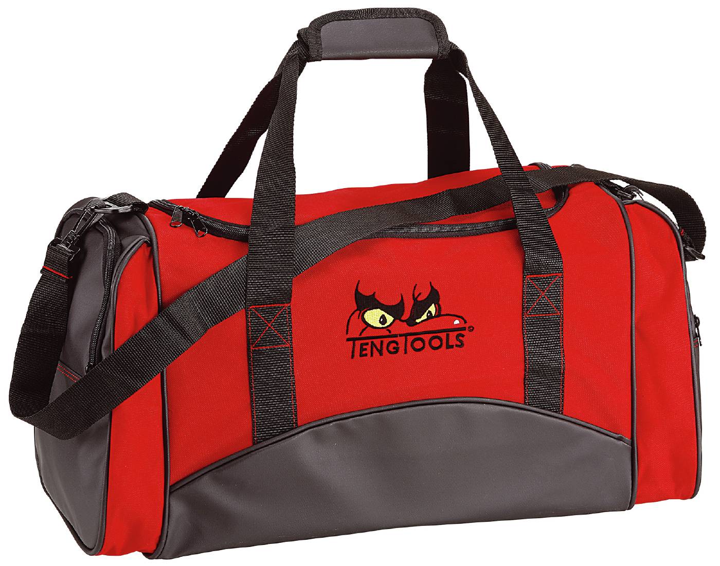 Punane spordikott mustade detailidega ja Teng Toolsi logoga.