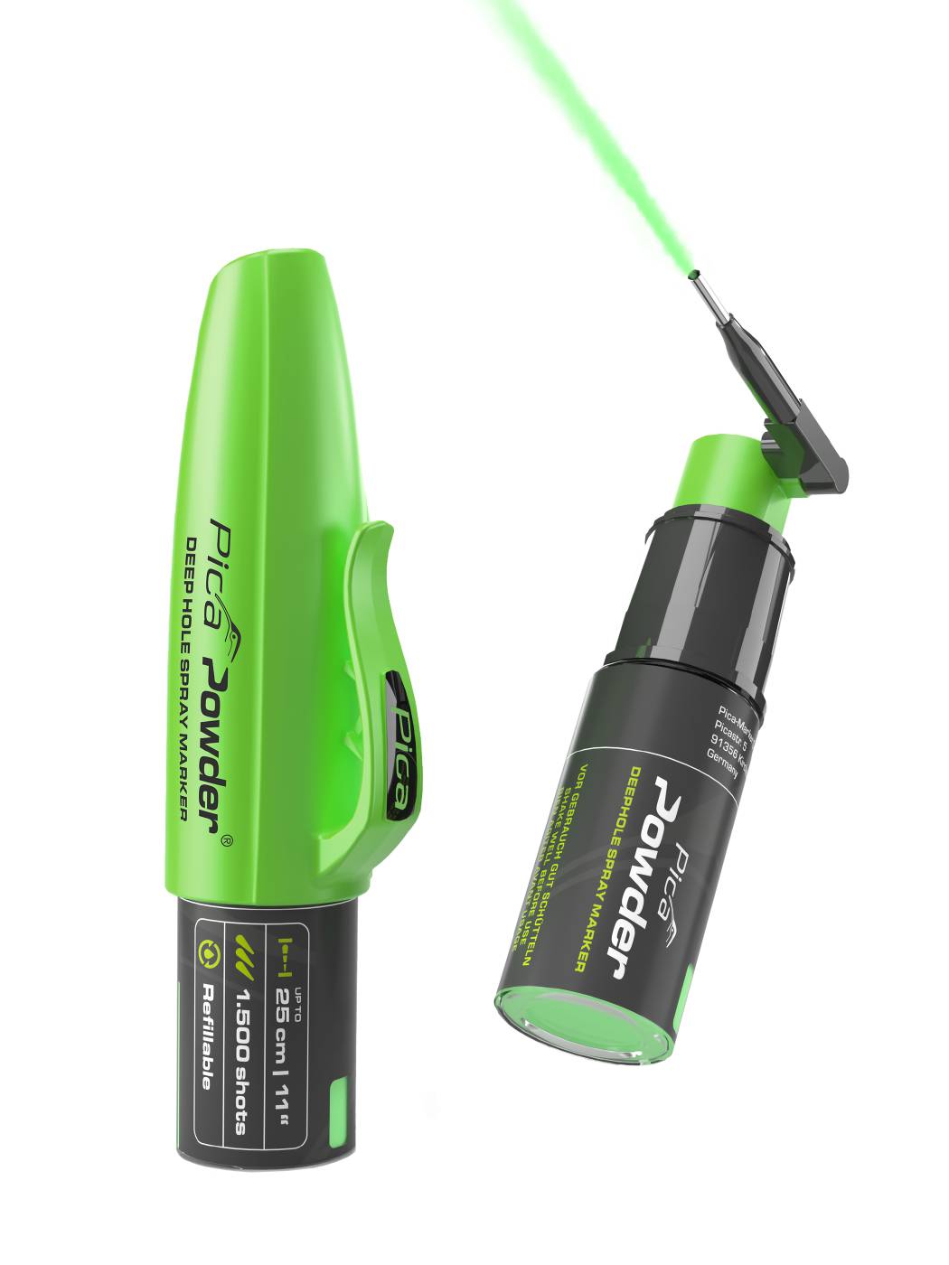 Spreimarker Pica Powder tagab täpse märgistuse läbi puuritud avade läbimõõduga 3 mm kuni 25 cm.